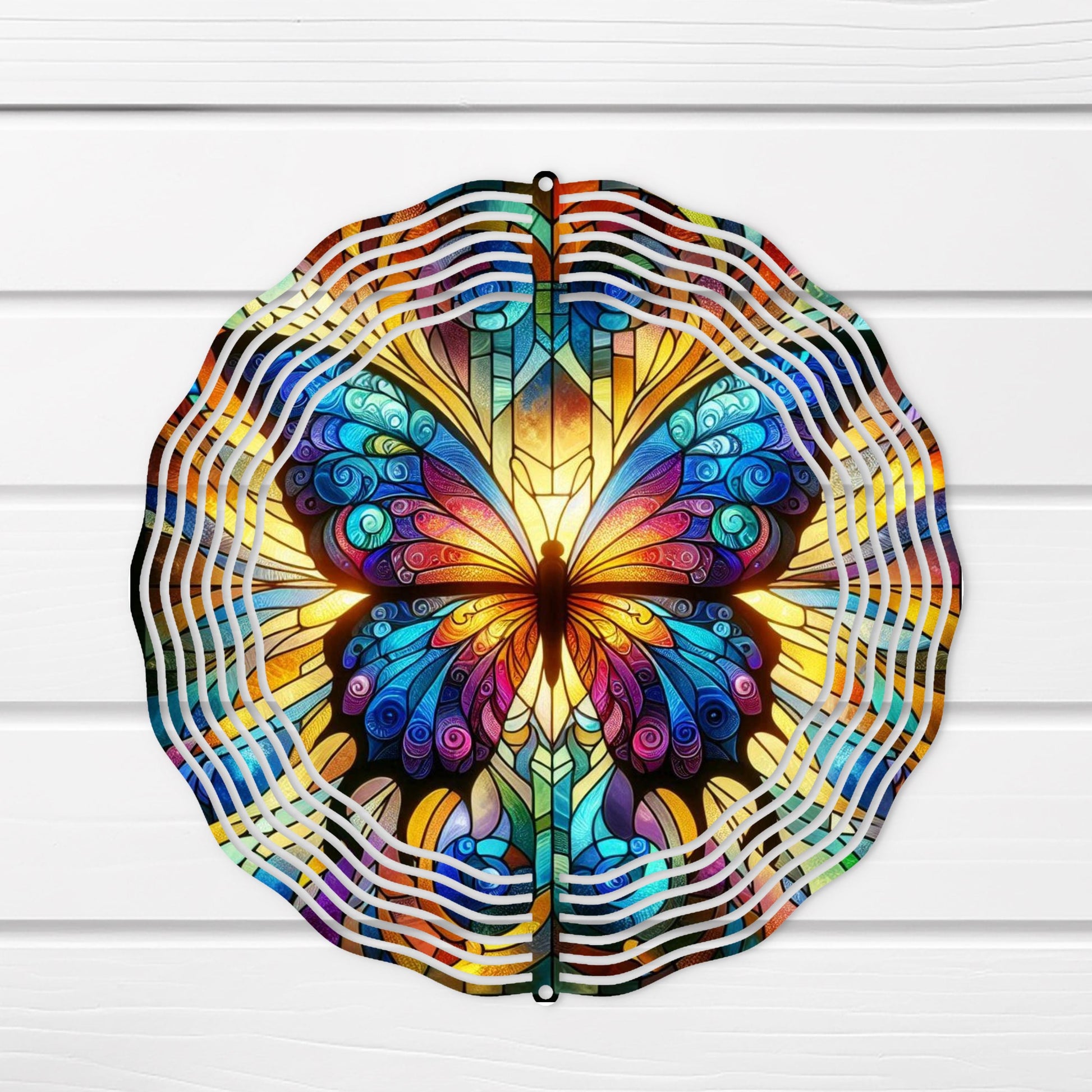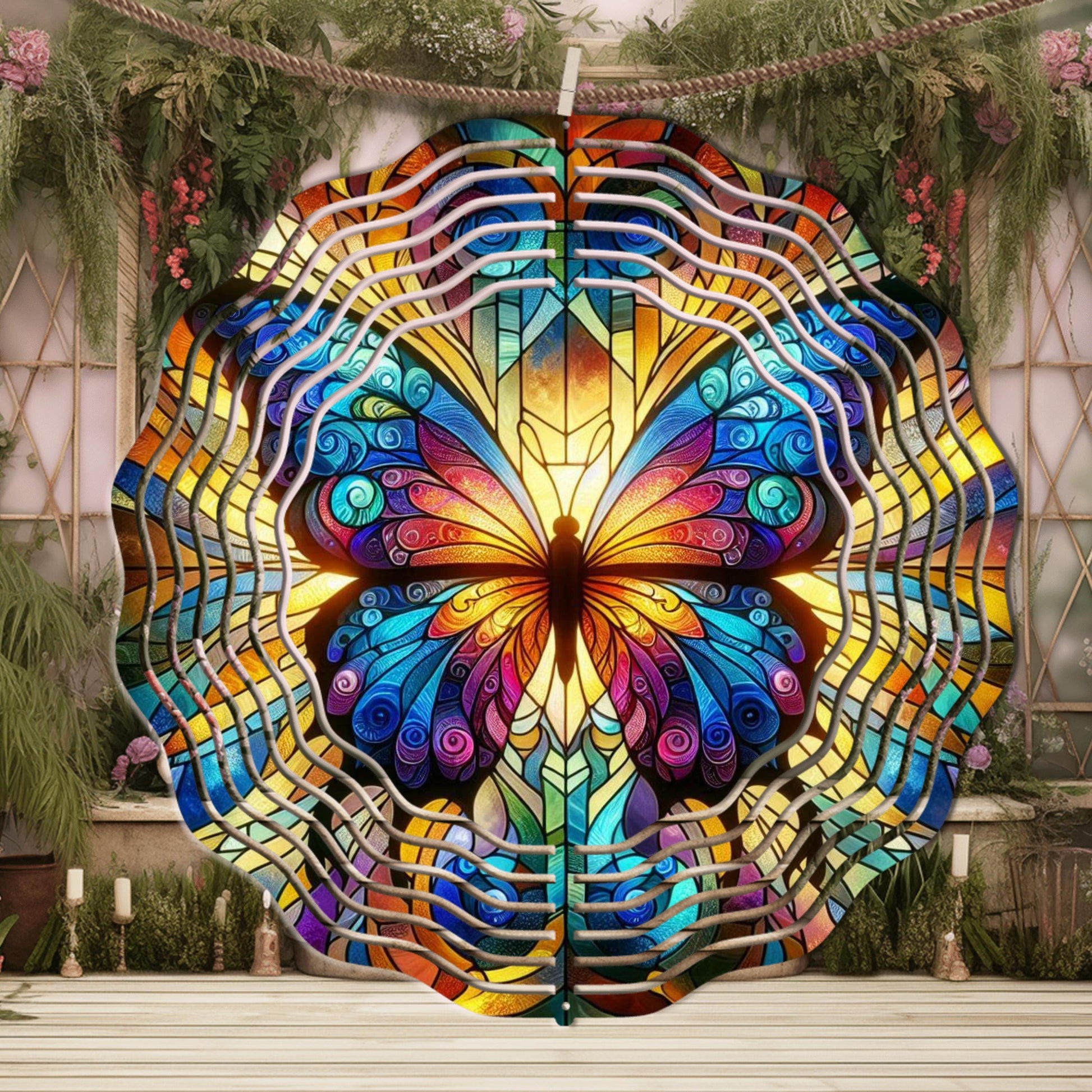 Butterfly Wind Spinner with Vibrant Stained Glass Effect - UV Protected Garden Decor