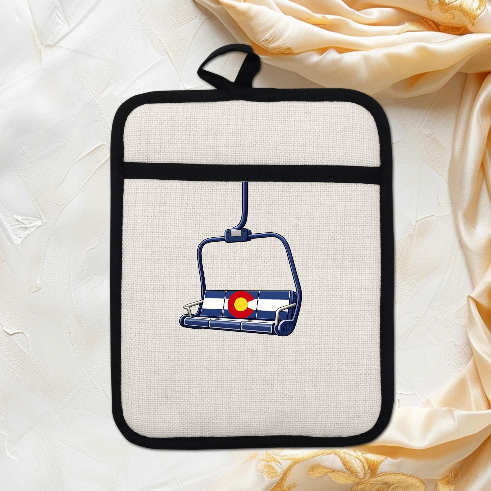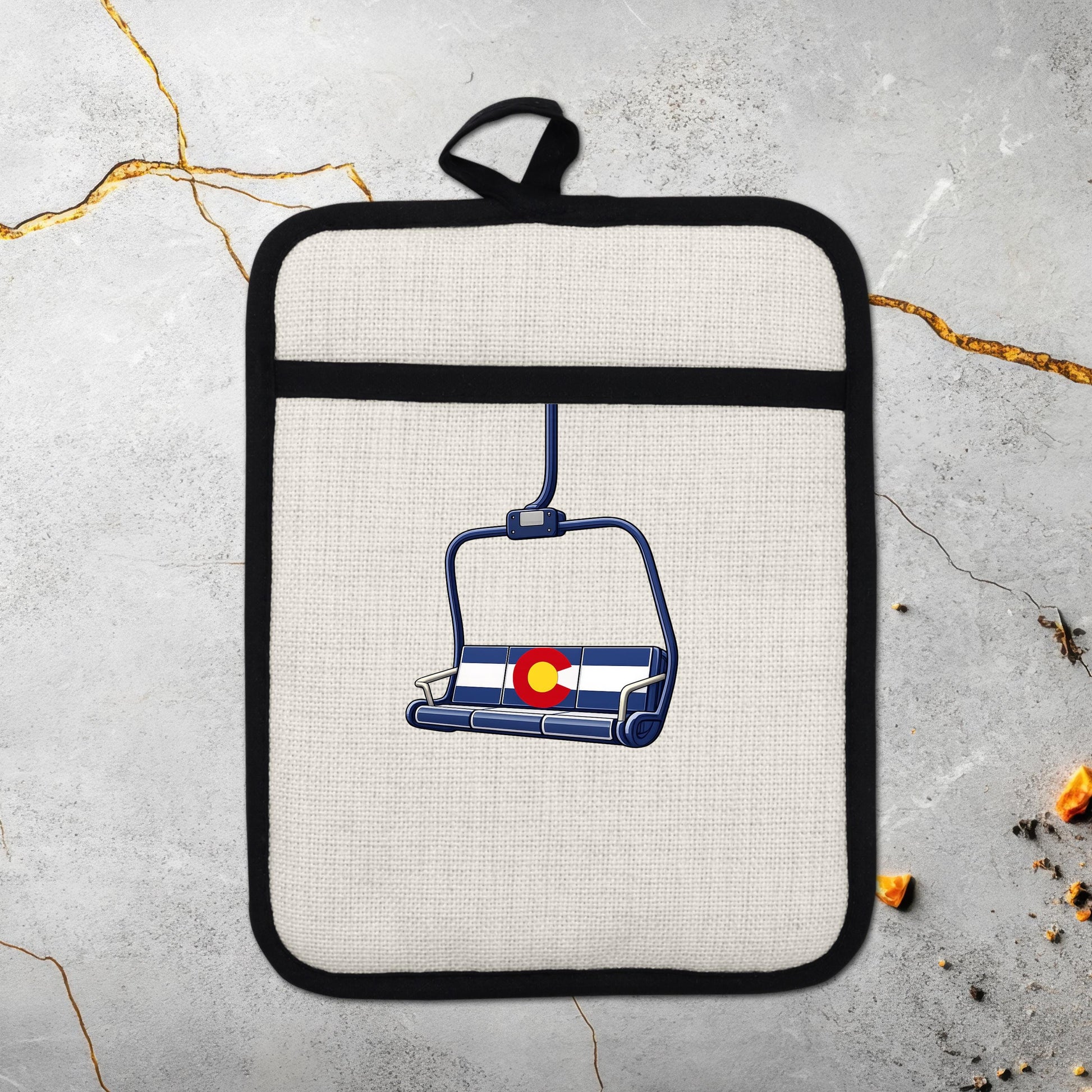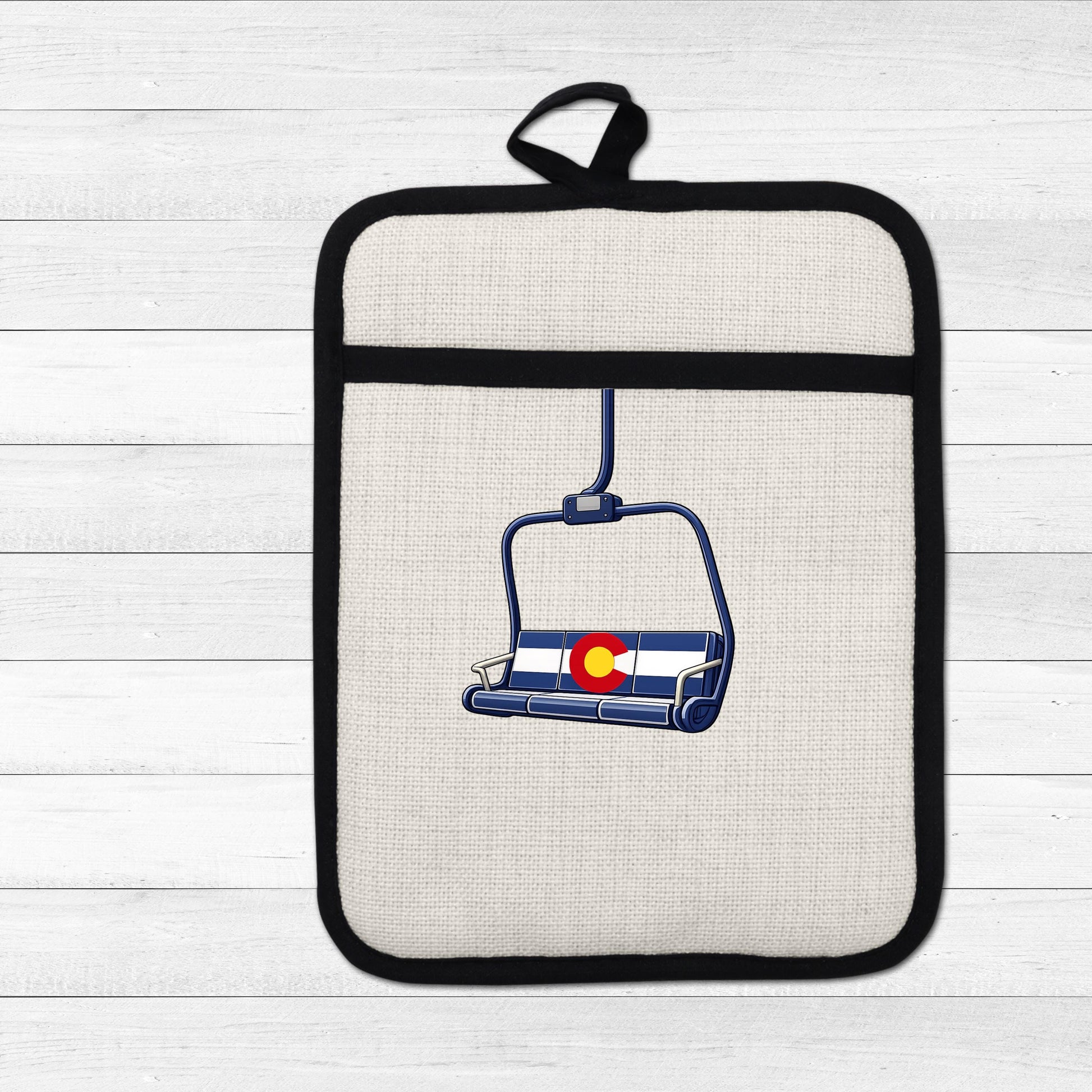 Colorado Flag Pot Holder – Ski Lift Pot Holder with Heat Resistant Mitt & Non Slip Trivet