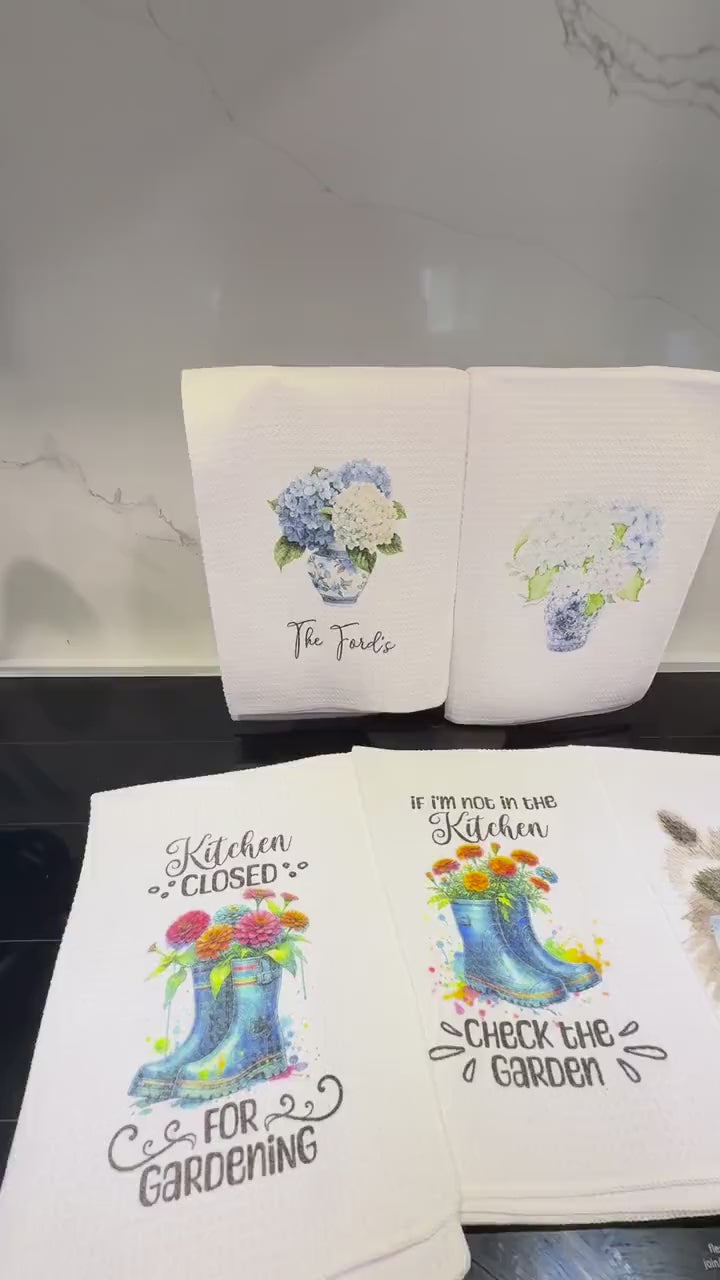 Our towels stand out for several reasons: they feature a premium microfiber texture that offers a luxurious feel, unlike traditional flour sack towels with heat transfer vinyl. You have customization options, including font colors in black, and you can mix and match towels with identical or different names to suit your preferences.