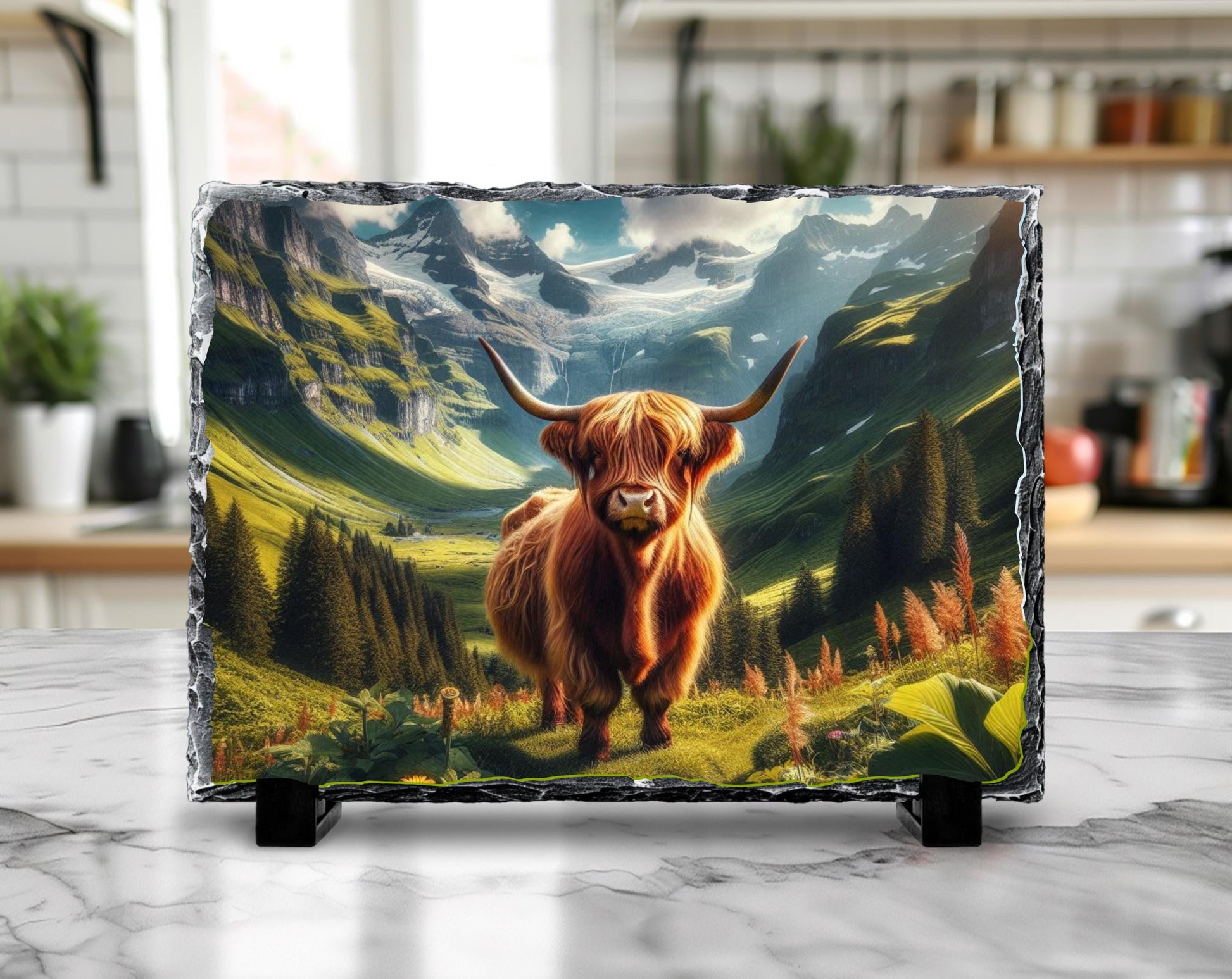 Each Highland cow plaque reflects nature inspired art traditions while offering a timeless rustic cabin decor element that blends seamlessly into any farmhouse style plaque collection. The natural slate art material provides durability and a tactile experience unmatched by other mediums. Whether you are searching for a mountain home gift or adding to your mountain view decoration, this piece stands out for its craftsmanship and visual appeal.