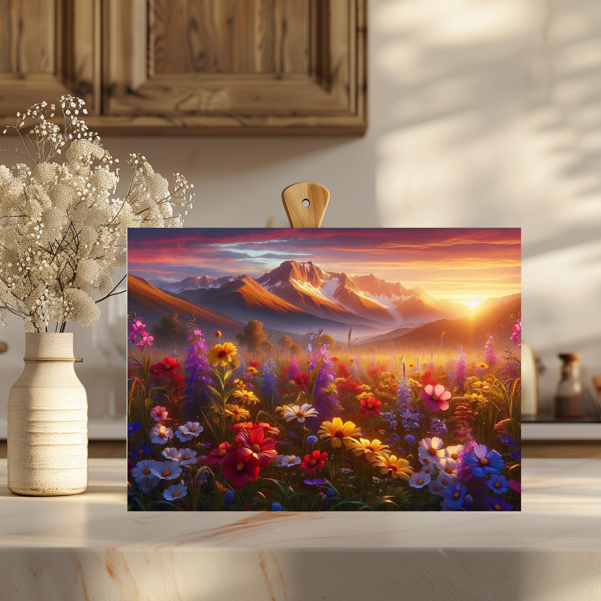 Mountain Valley Sunset Cutting Board with Wildflowers Snow-Capped Peaks - Perfect Gift for Outdoor Lovers Hostess