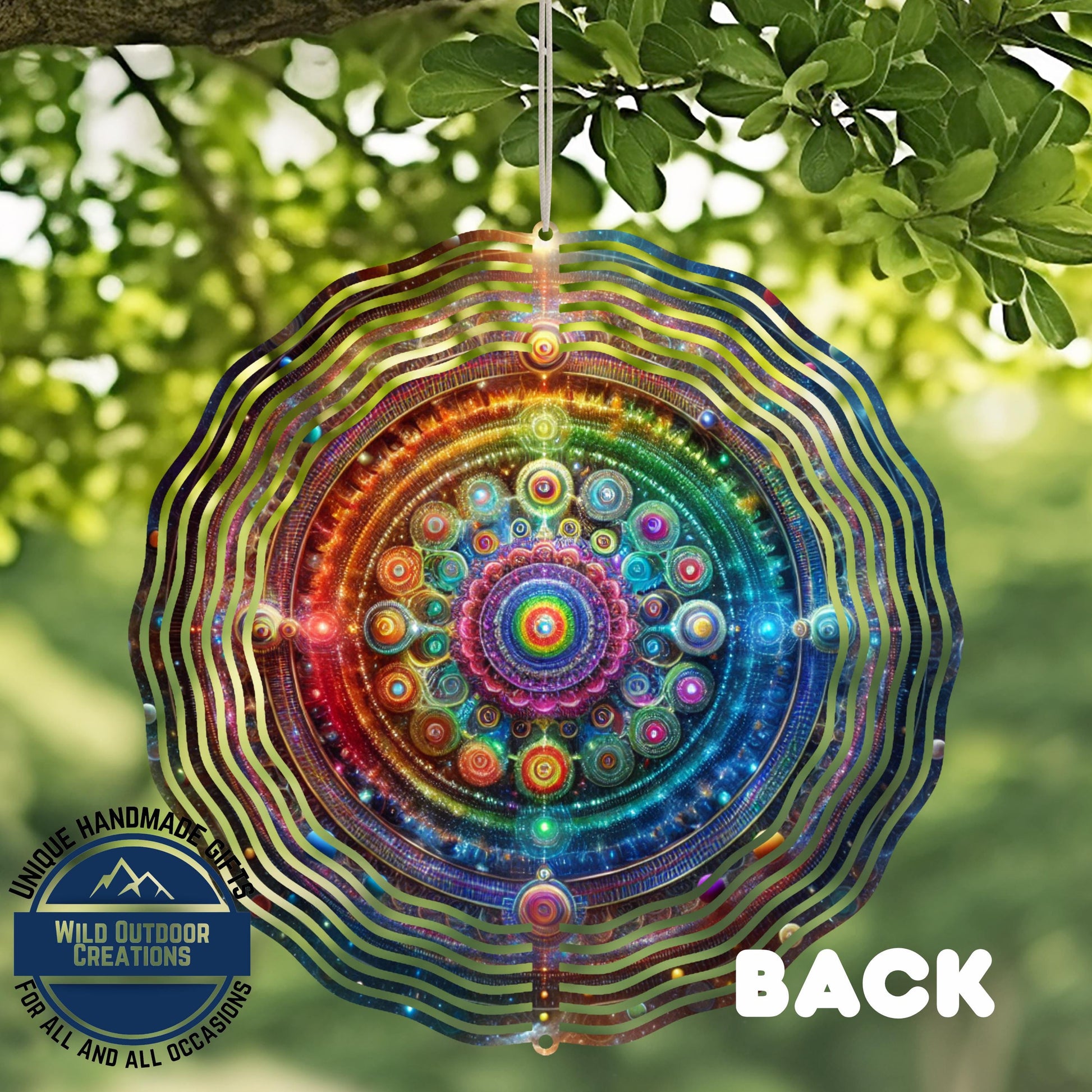Neon Mandala Wind Spinner - Boho Garden Decor | Double Sided Aluminum Spinner