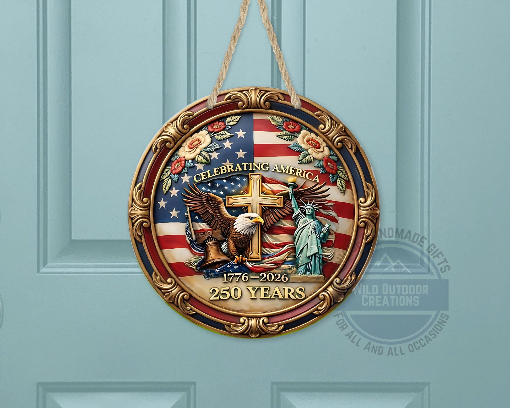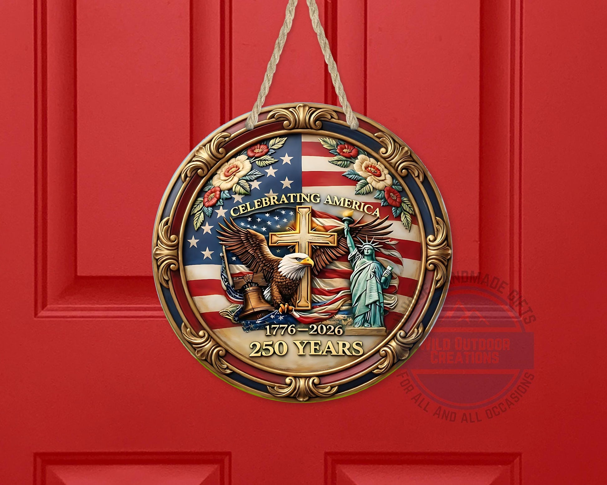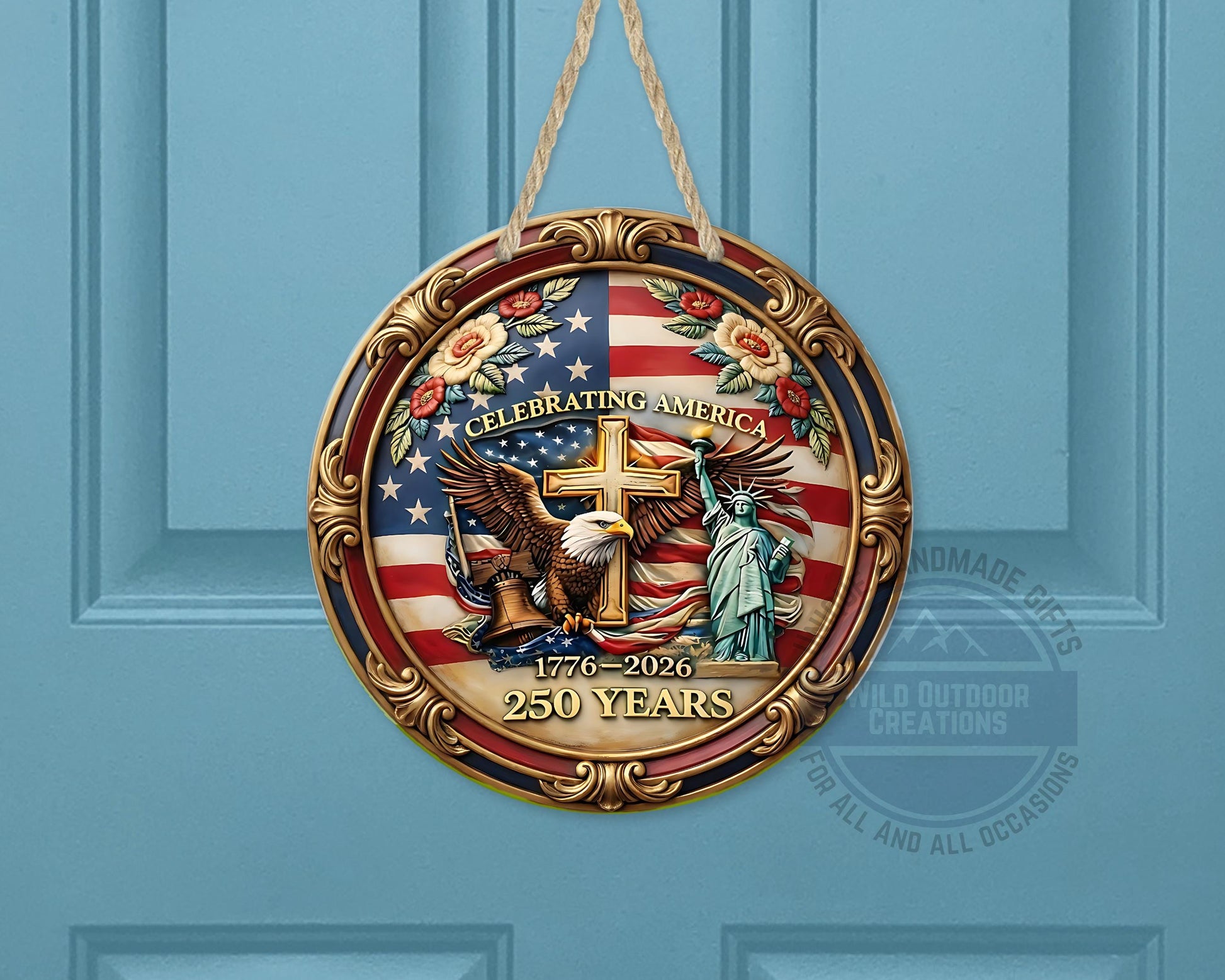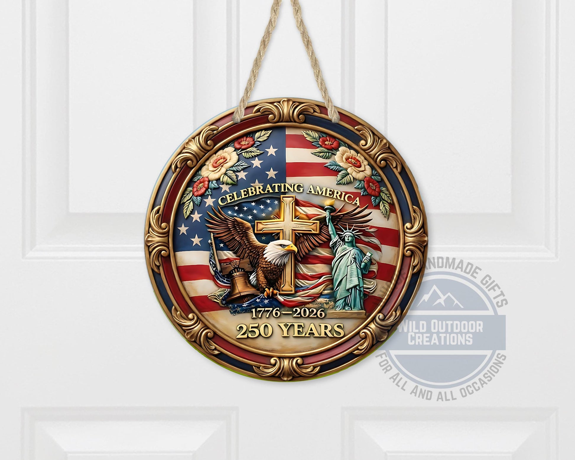 Each patriotic door hanger is carefully crafted to honor American history while enhancing your home’s charm with quality craftsmanship. Our shop is committed to creating unique décor pieces that celebrate tradition and inspire pride in every detail. The America 250 decor has been tested for durability in outdoor conditions ensuring lasting enjoyment as a meaningful gift or a standout addition to your patriotic displays.