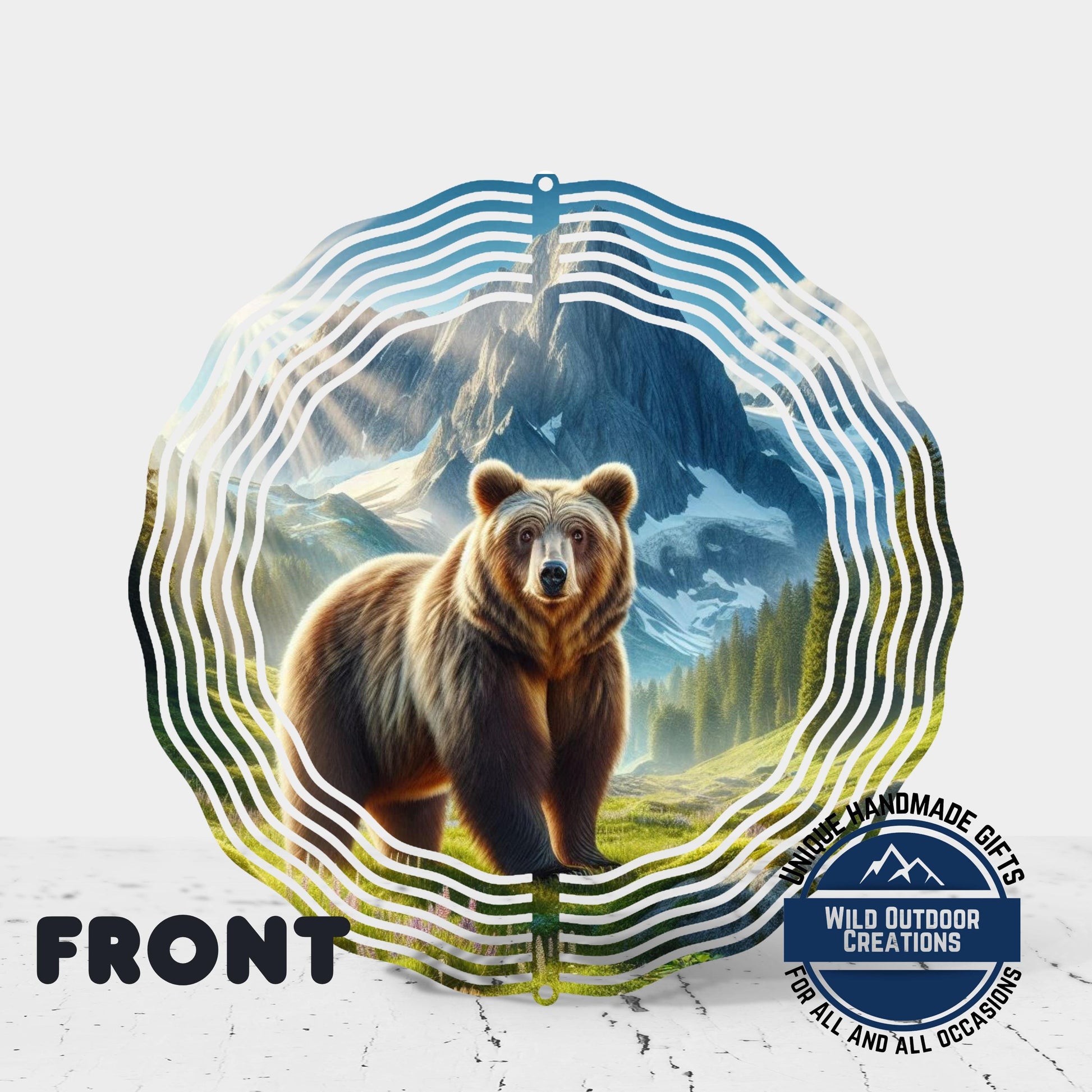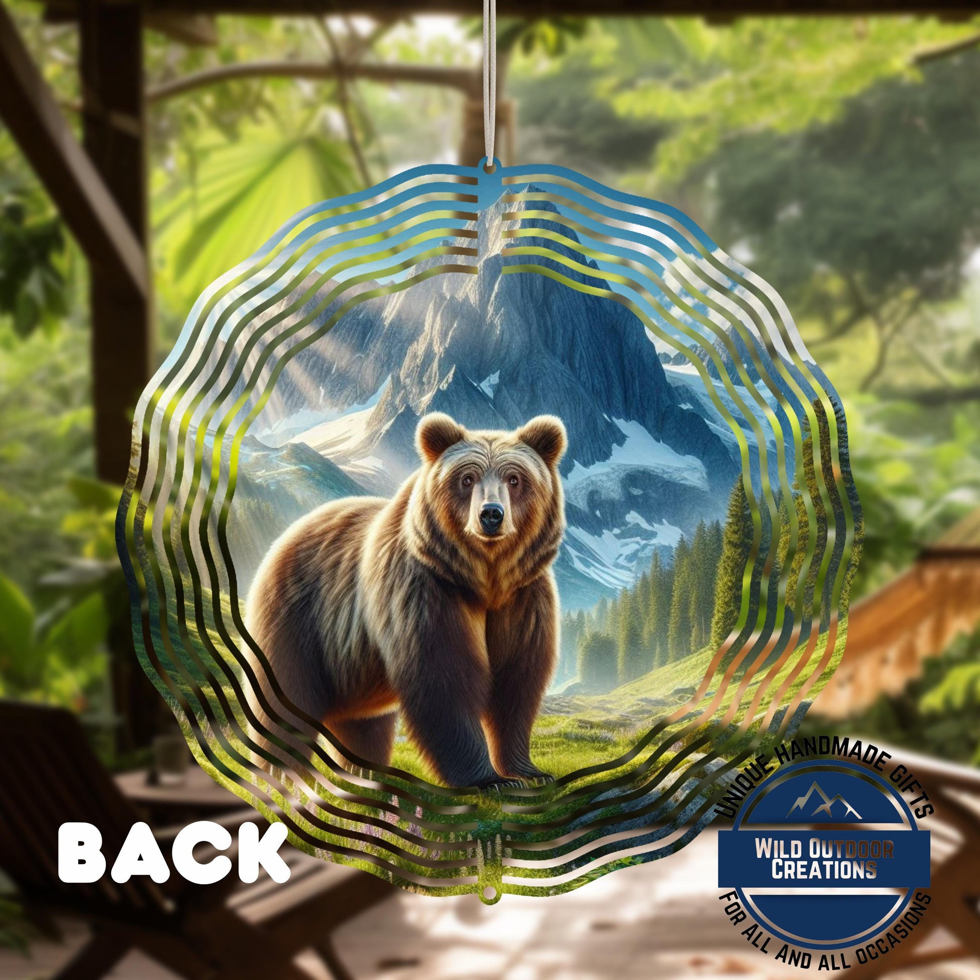 Bear Mountain Wind Spinner - Outdoor Wind Spinner, Double Sided Aluminum Garden Decor 10 Inch