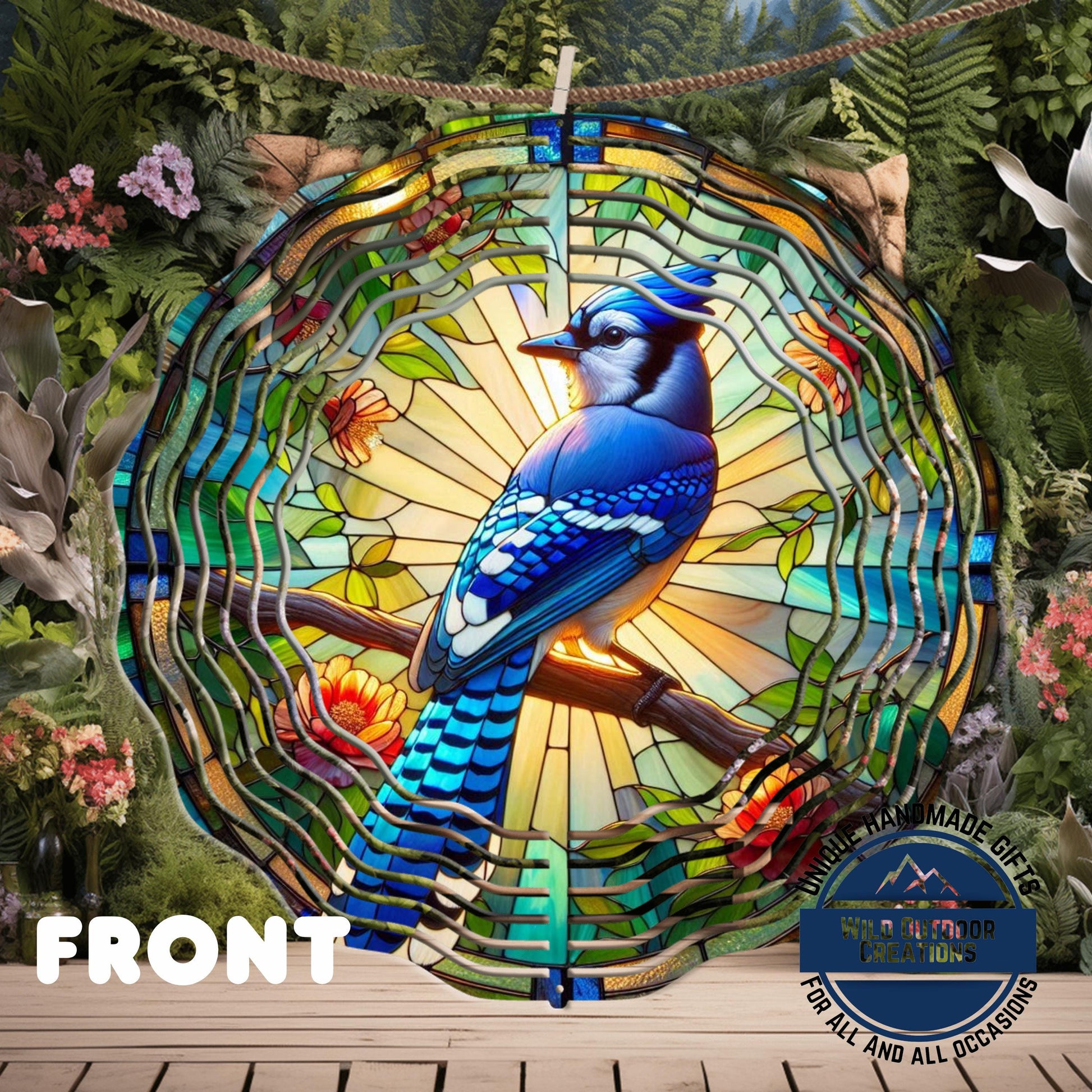 Explore more unique designs in our shop that complement this blue jay garden art piece. With quality craftsmanship and attention to detail, our wind spinners bring life and motion to your yard art decoration collection while celebrating the beauty of nature.