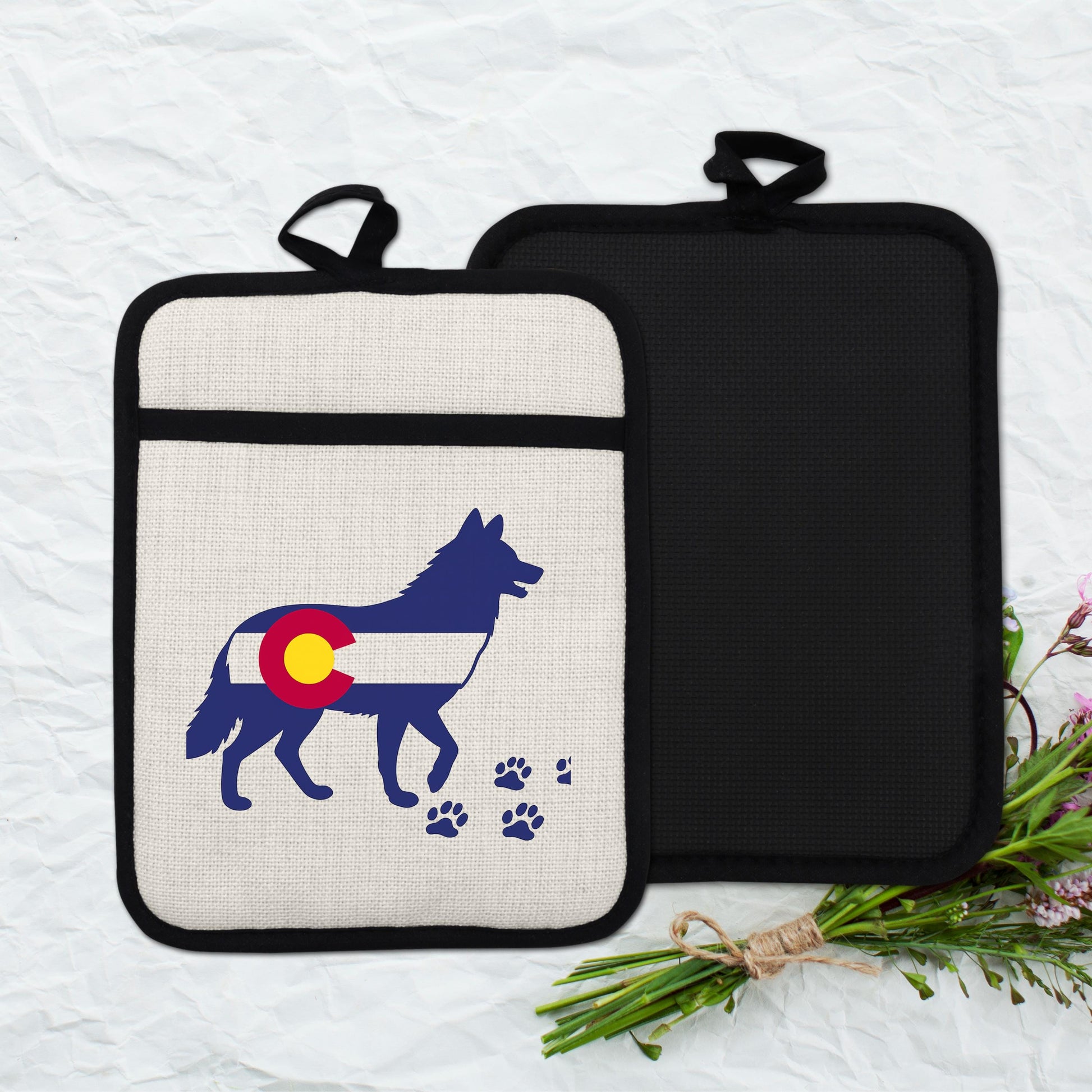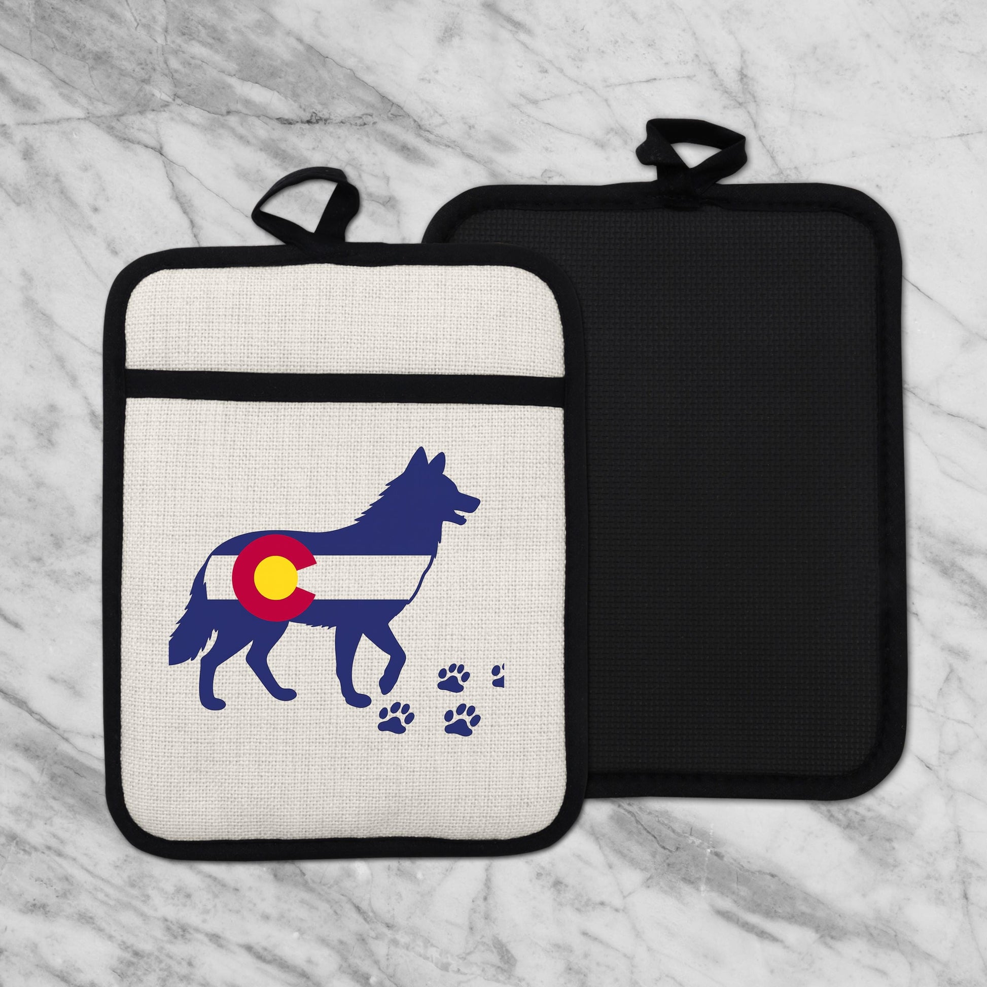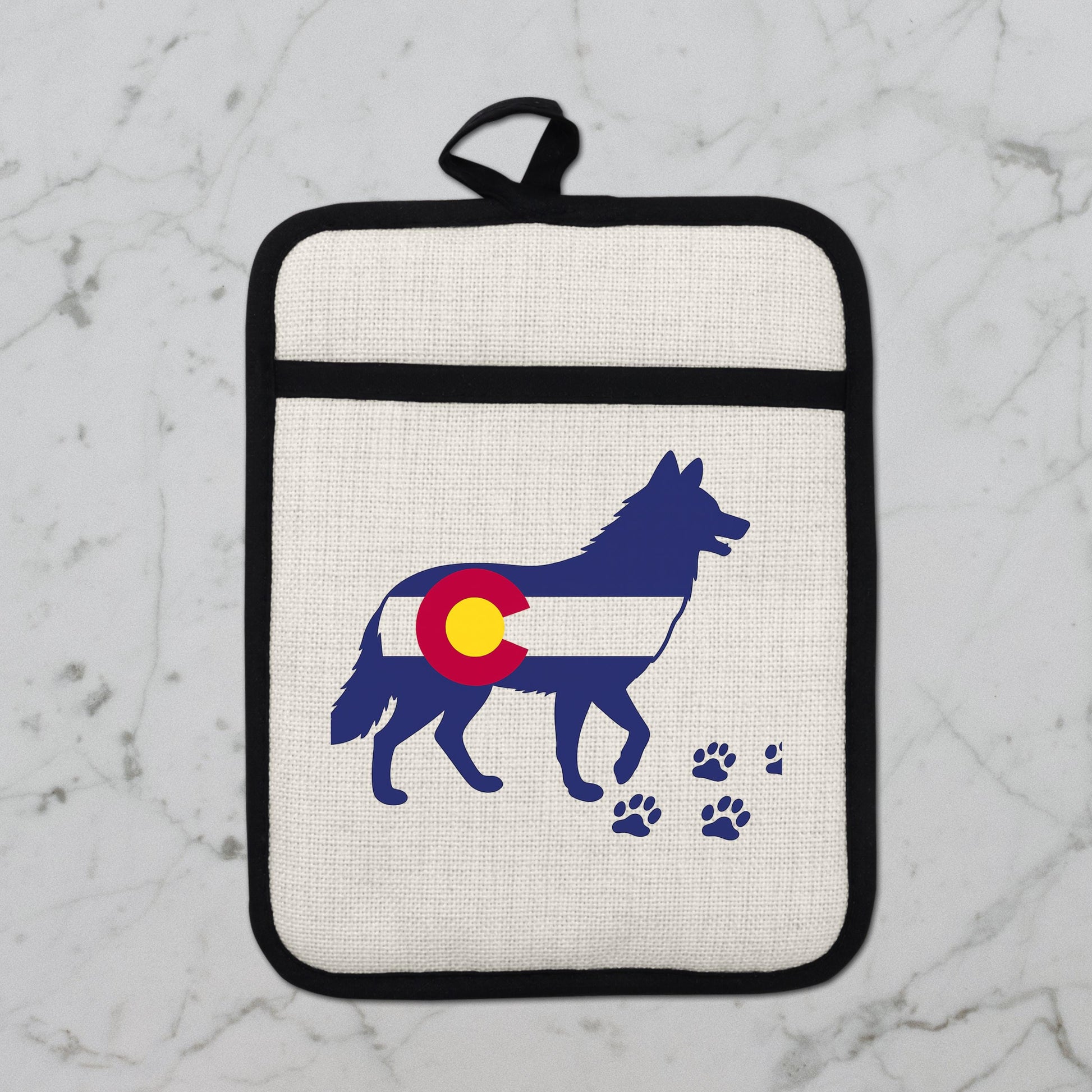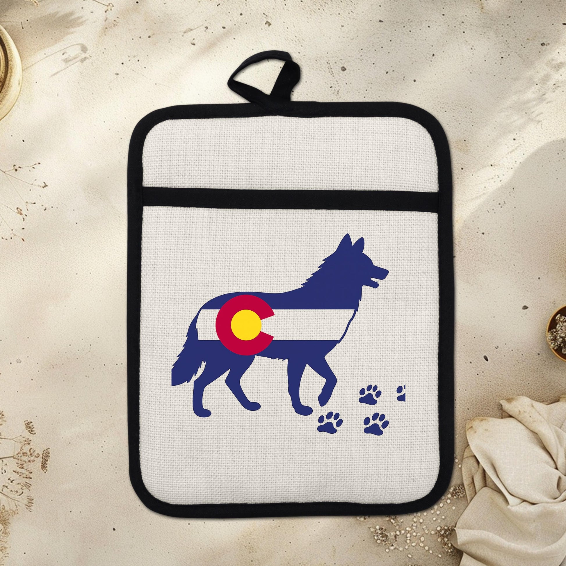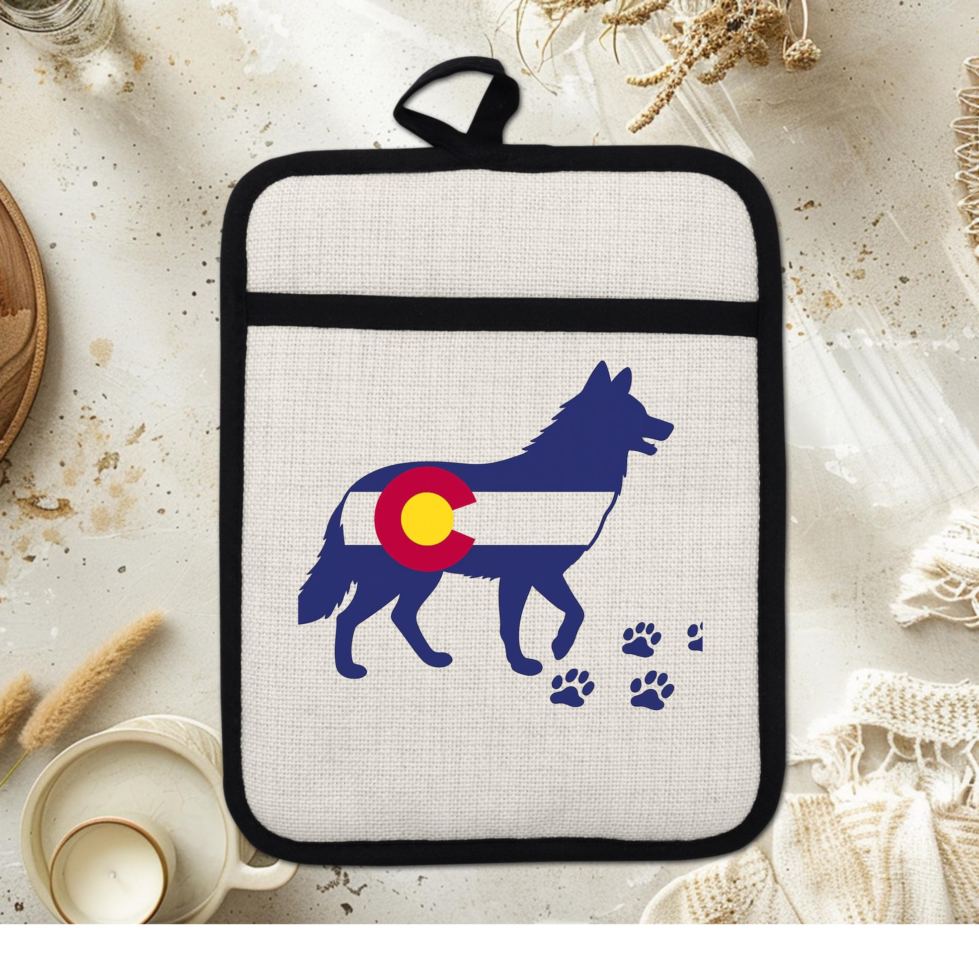 As a housewarming gift idea, this Colorado wolf pot holder stands out for its unique design and practical benefits. Customers appreciate its durability and style, often complimenting the vivid colors that remain bright even after multiple washes. Our shop specializes in custom kitchen accessories inspired by nature and outdoor living—reach out if you want personalized touches or matching items.