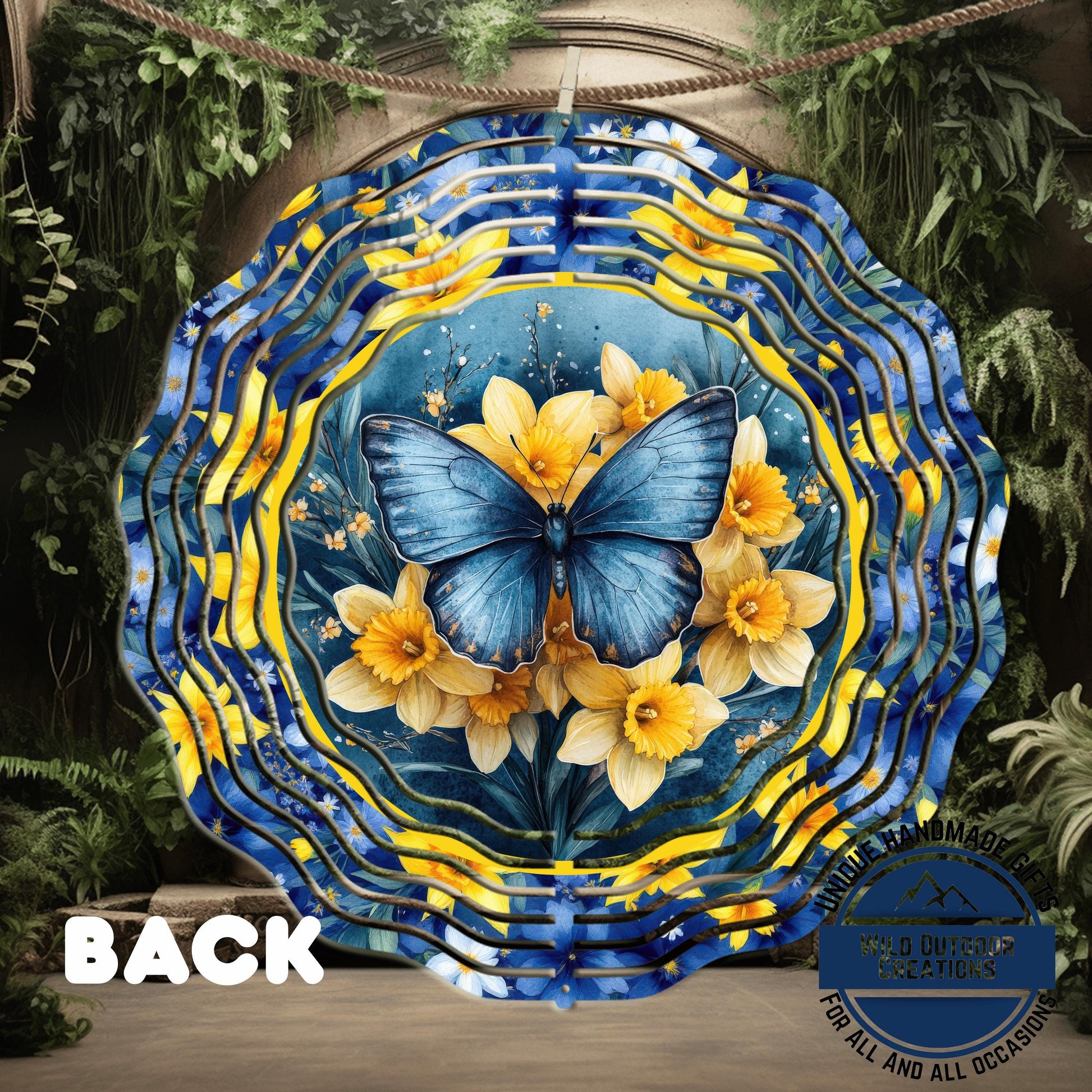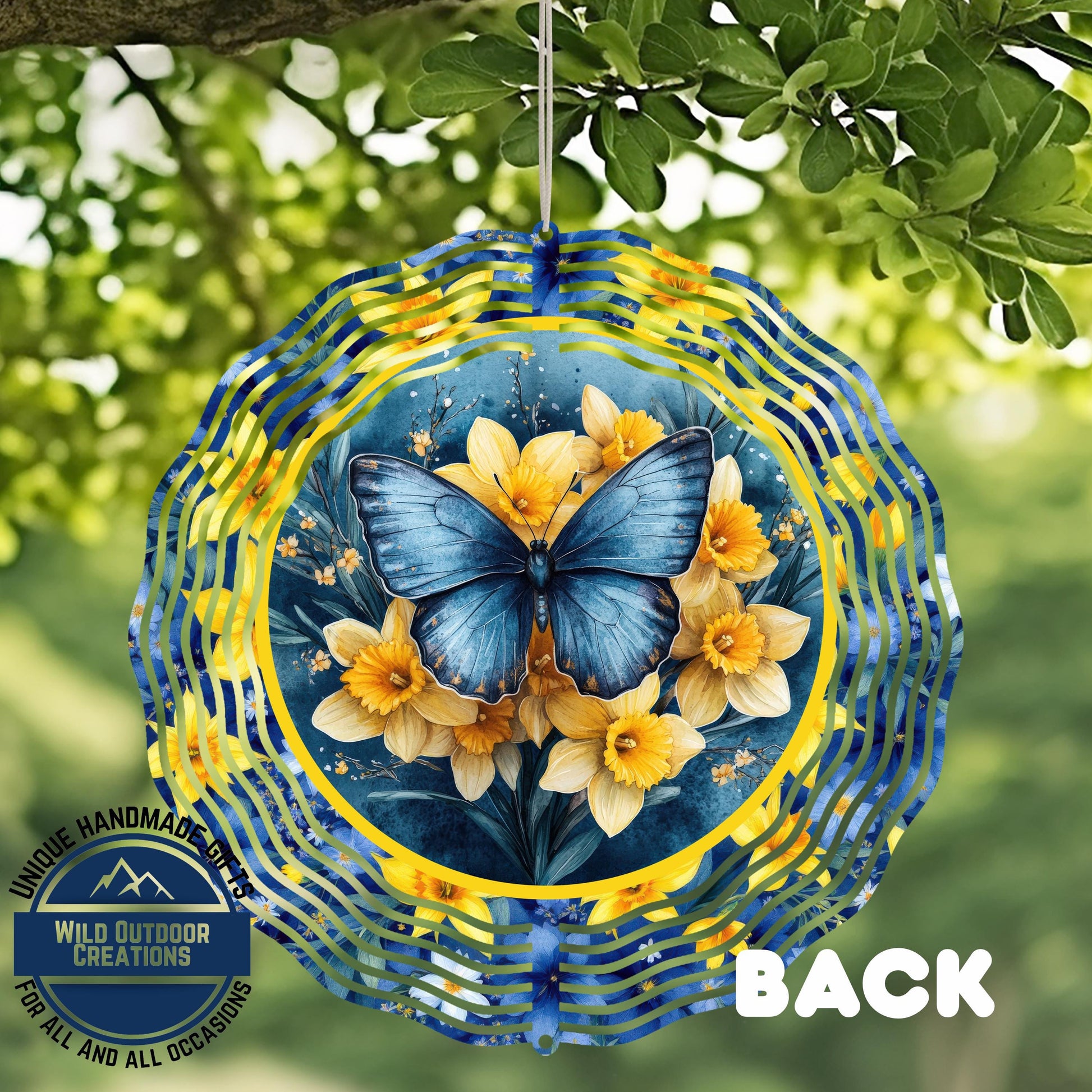 Daffodil Wind Spinner – Blue Butterfly Garden Decor, 10-Inch Aluminum Outdoor