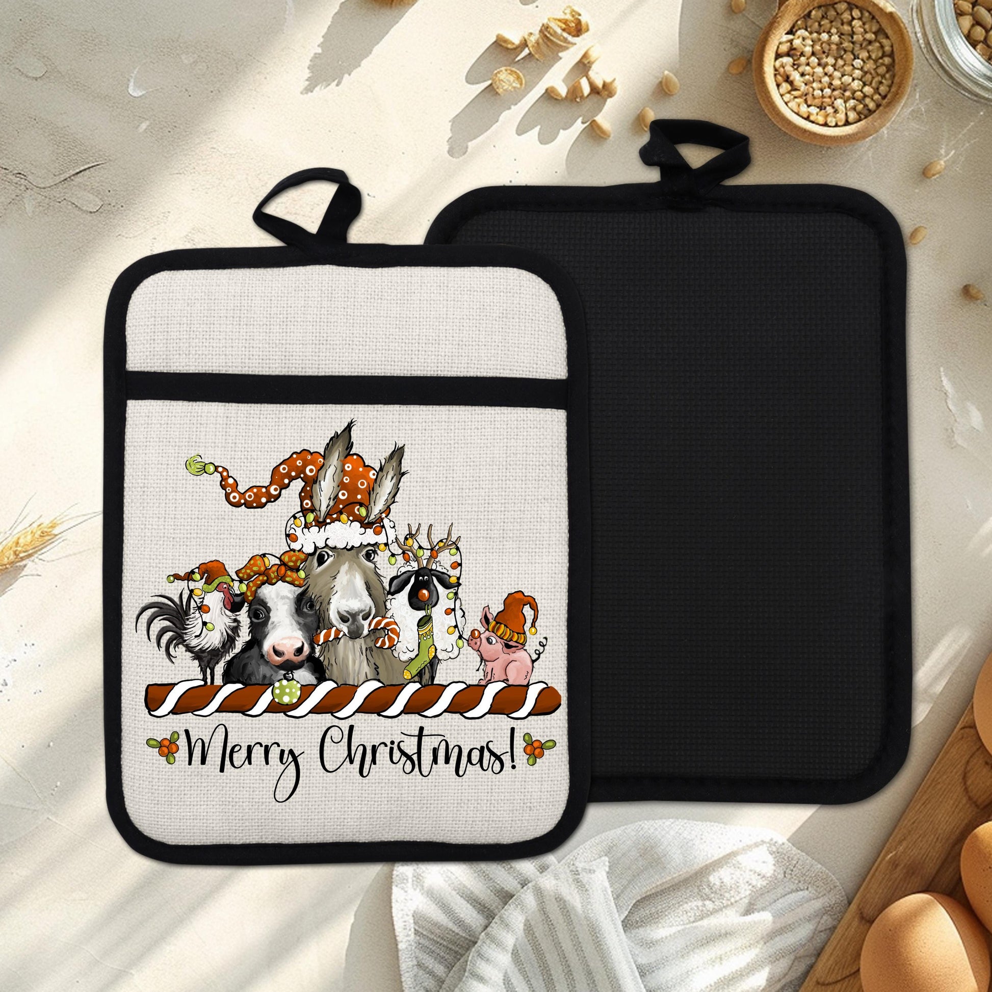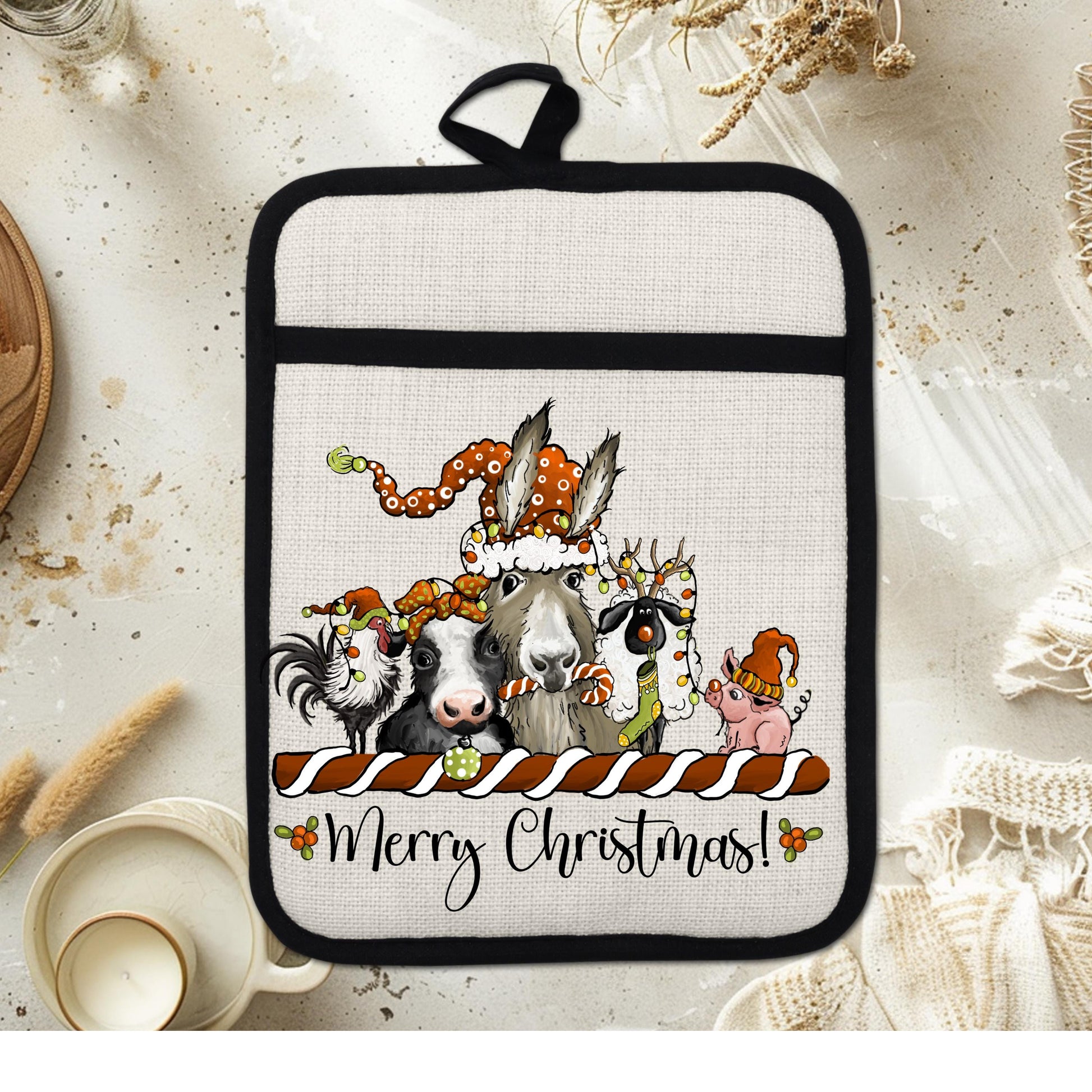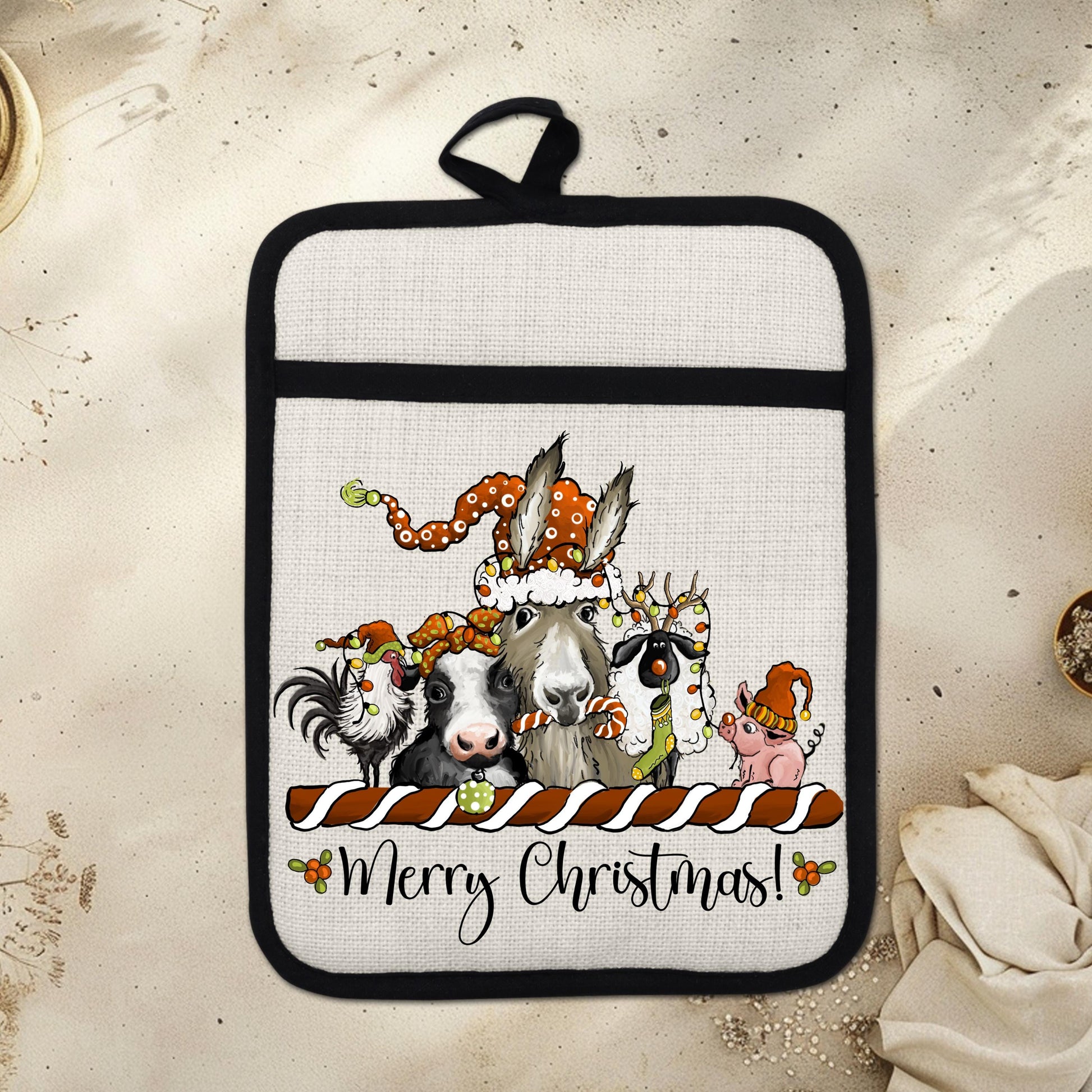 Farm Animal Christmas Pot Holder Funny Holiday Kitchen Decor with Chicken Cow Llama Pig Sheep Design