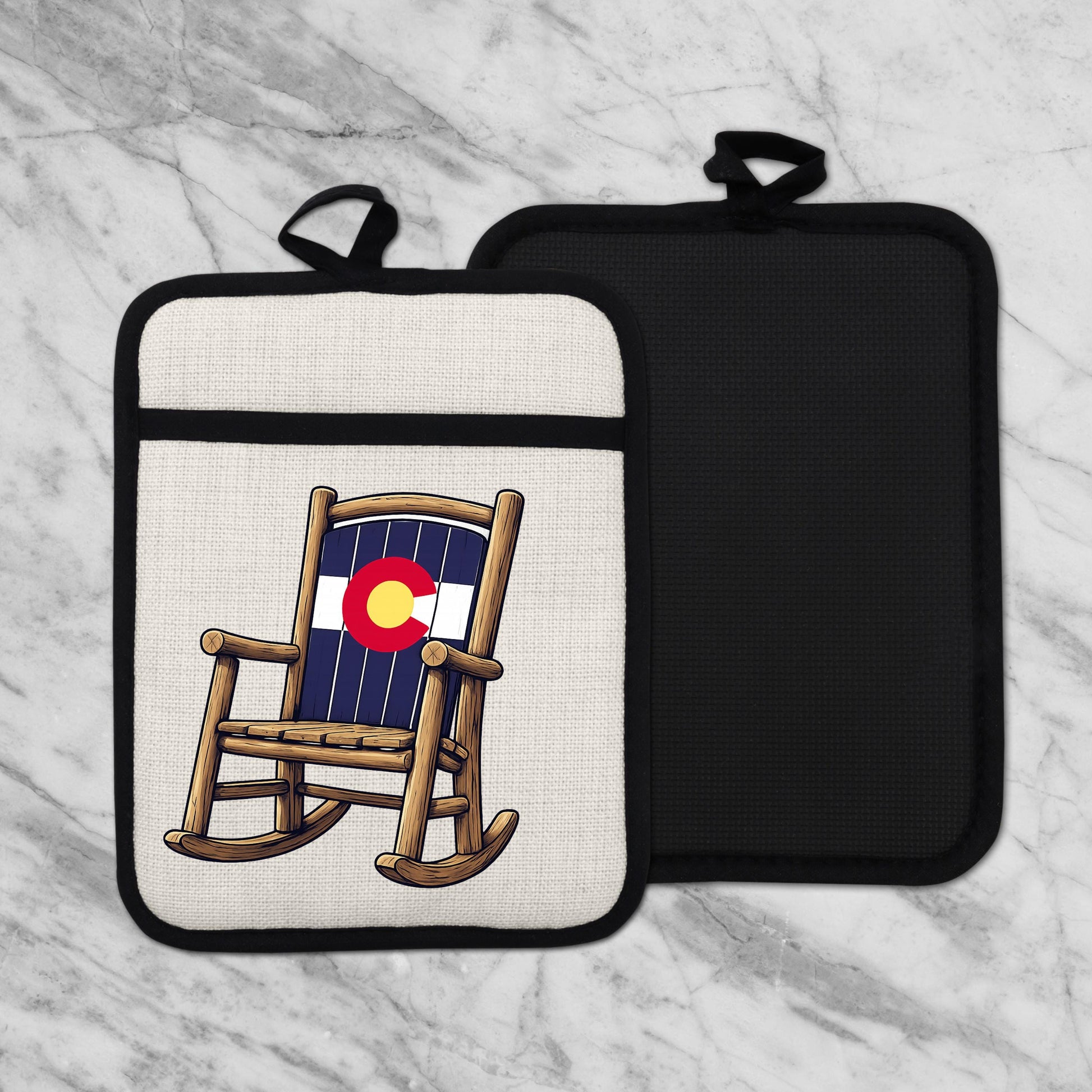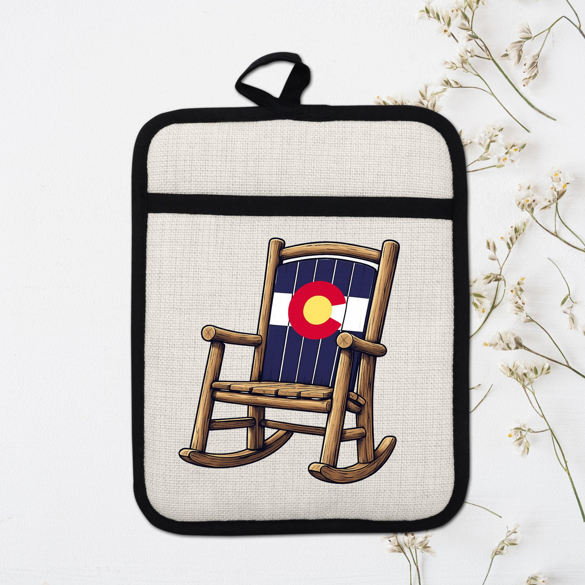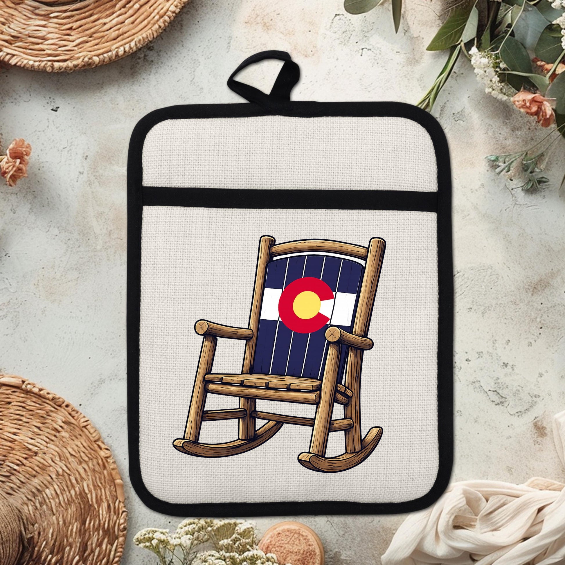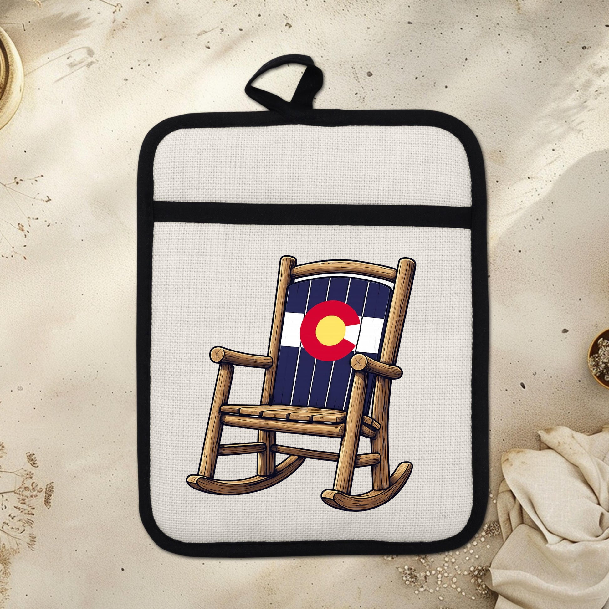 Linen Oven Mitt - Colorado Rocking Chair Pot Holder with Trivet & Heat Resistant Design