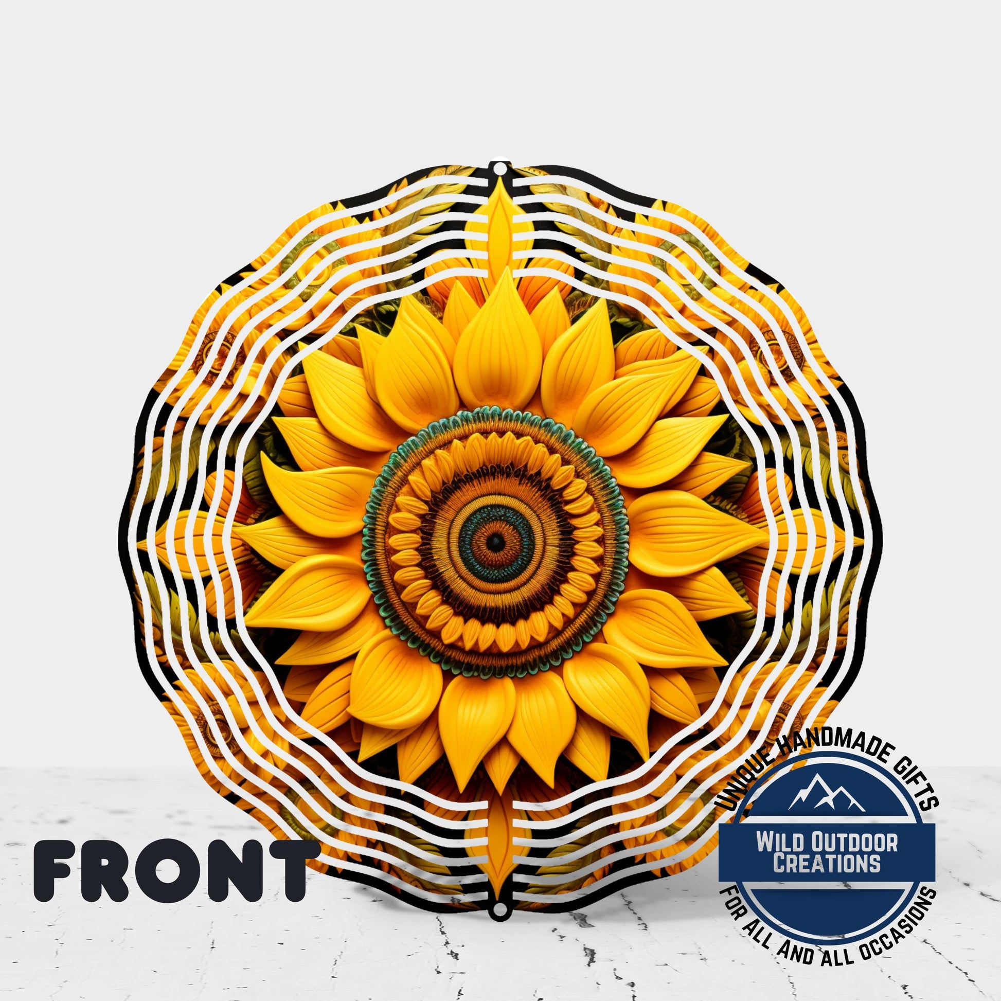 The sunflower wind spinner is a vibrant 10-inch garden wind spinner designed to add cheerful outdoor accents and colorful garden art to any space. Featuring a 360 degree swivel spinner, this UV protected spinner rotates smoothly in the breeze, creating a mesmerizing display that brightens patios, yards, balconies, and indoor areas. Crafted from high-quality aluminum with double-sided printing, this spinning garden ornament delivers long-lasting performance and vivid floral colors that resist fading.