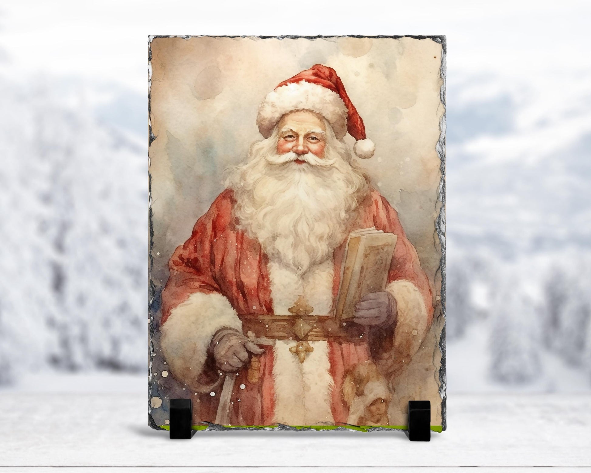 Watercolor Santa Slate - Rustic Christmas Decor Unique Holiday Gift